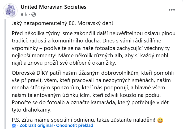 Více informací, zejména fotografií, na stránkách https://www.facebook.com/UnitedMoravianSocieties