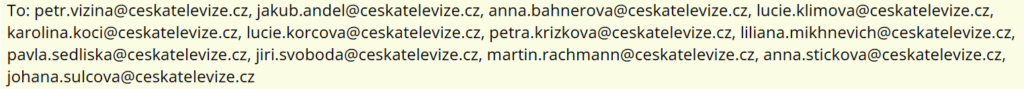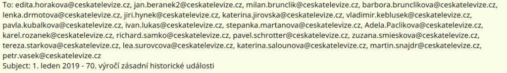 Níže je přiložen seznam redaktorů České televize z náhodně vybraného roku 2018 s tím, že upozorněna bývala i Rada České televize, Rada pro rozhlasové a televizní vysílání, rozhlasový ombudsman a další.
