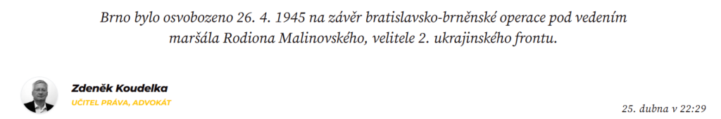 Dub26 Osvobození moravského Brna 26. 4. 1945 https://www.blogosvet.cz/article/osvobozeni-moravskeho-brna-26-4-1945-MlioY?fbclid=IwY2xjawJ7c-9leHRuA2FlbQIxMQBicmlkETFIOHhHcmp0aHN4SERjdGhXAR7lCa68RXL10XWJNKAY4d3ncPGtxfF35Ps01_O8G4TC8qGcoln1nUKeIjx5yw_aem_GF8kK7geFsCrqJtSH7p9PQ