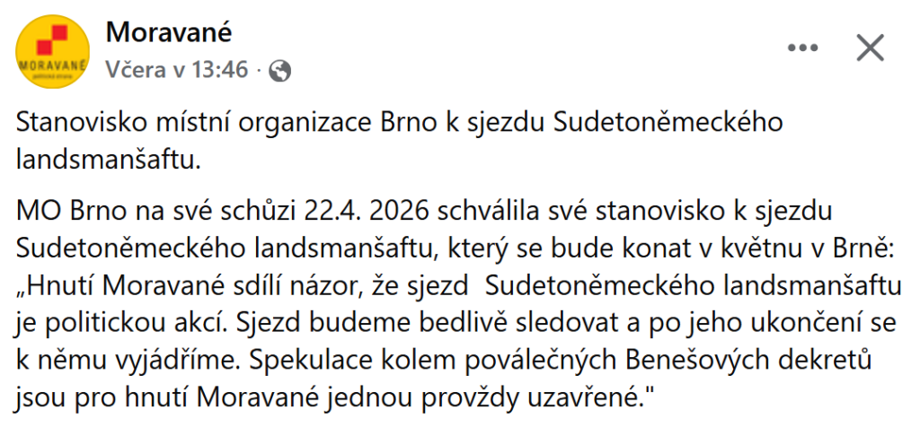 Dub24 Stanovisko místní organizace Brno k sjezdu Sudetoněmeckého landsmanšaftu https://www.facebook.com/photo?fbid=1427757016049140&set=a.573996231425227